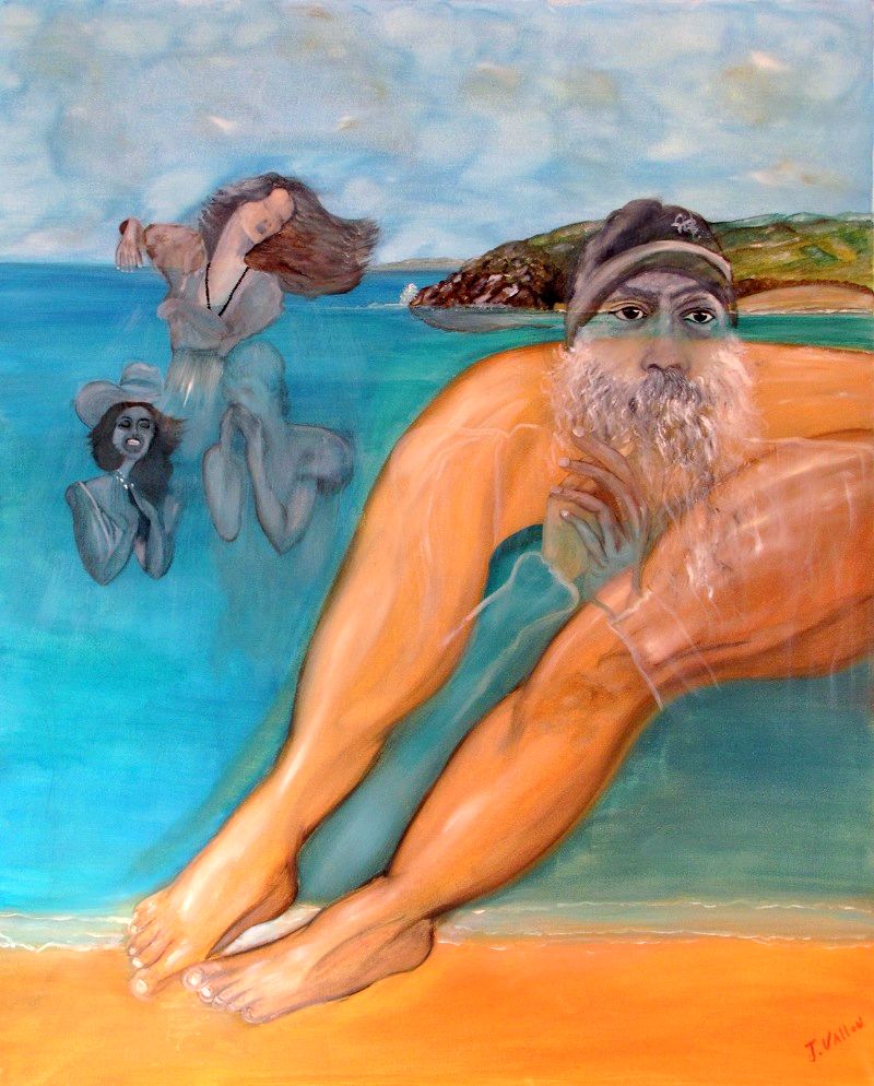 Le syncrétisme va parfois encore plus loin en mélangeant, en plus des cultures et des religions, les époques…. (Prémonition, 1985, ou plus encore… le départ de l’ère du poisson arrivée à l’ère du verseau, 1994). Et finalement, cette manière de faire renvoie elle aussi à une tradition ancestrale : de même que les Romains intégraient les dieux des pays qu’ils conquéraient à leur panthéon, Jean Vallon convoque dans ses tableaux toute la culture que peut avoir un Européen à notre époque : une ouverture sur l’ensemble des cultures existantes, un aperçu sur l’histoire de l’antiquité à nos jours, une sensibilité qui permet de créer en permanence des liens, des associations, voire des fusions entre tous ces éléments.
