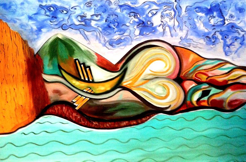 Mais si l’épaule peut former une colline, si la chevelure peut représenter une côté rocheuse, la colonne vertébrale forme une vague sur laquelle vogue une barque pendant que les fesses et les jambes virent au tableau abstrait. La femme est là, domine le tableau, mais elle finit par être source d’inspiration. C’est sa présence qui inspire au peintre une série de scénettes multiples, juxtaposées, dont l’unité vient de leur présence au sein du corps féminin.