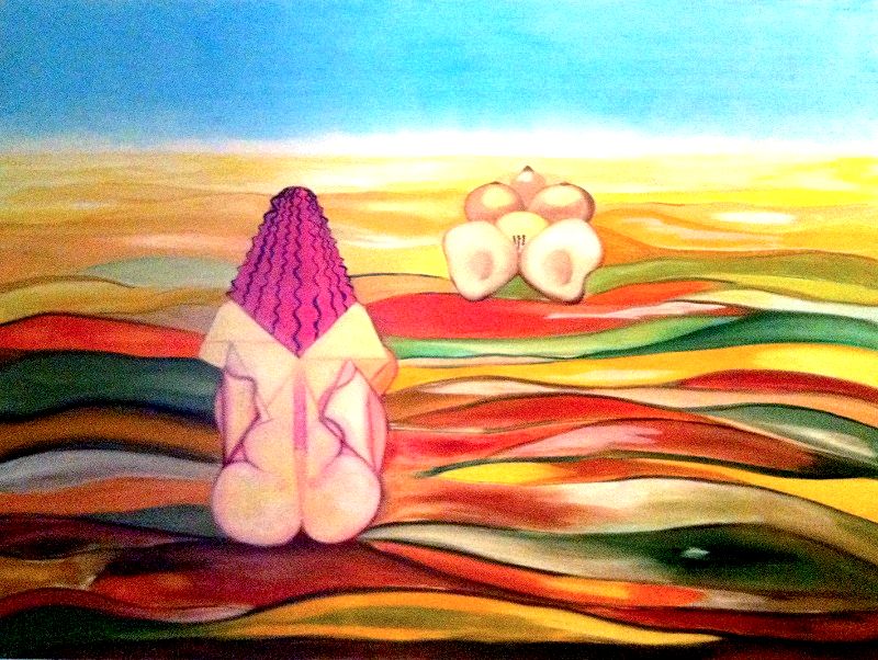 Dans tous ces tableaux, la femme est celle par qui tout se crée, celle qui apporte son ancrage à l’homme, celle qui irrigue les sols comme les veines irriguent le corps humain.