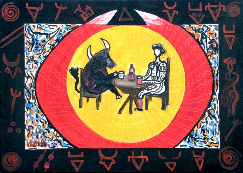 Finalement, la corrida chez Jean Vallon reste ambivalente. C’est un spectacle, à la fois sérieux et ludique : dans Le prologue (2001), le torero boit un verre (le dernier ?) avec son taureau…